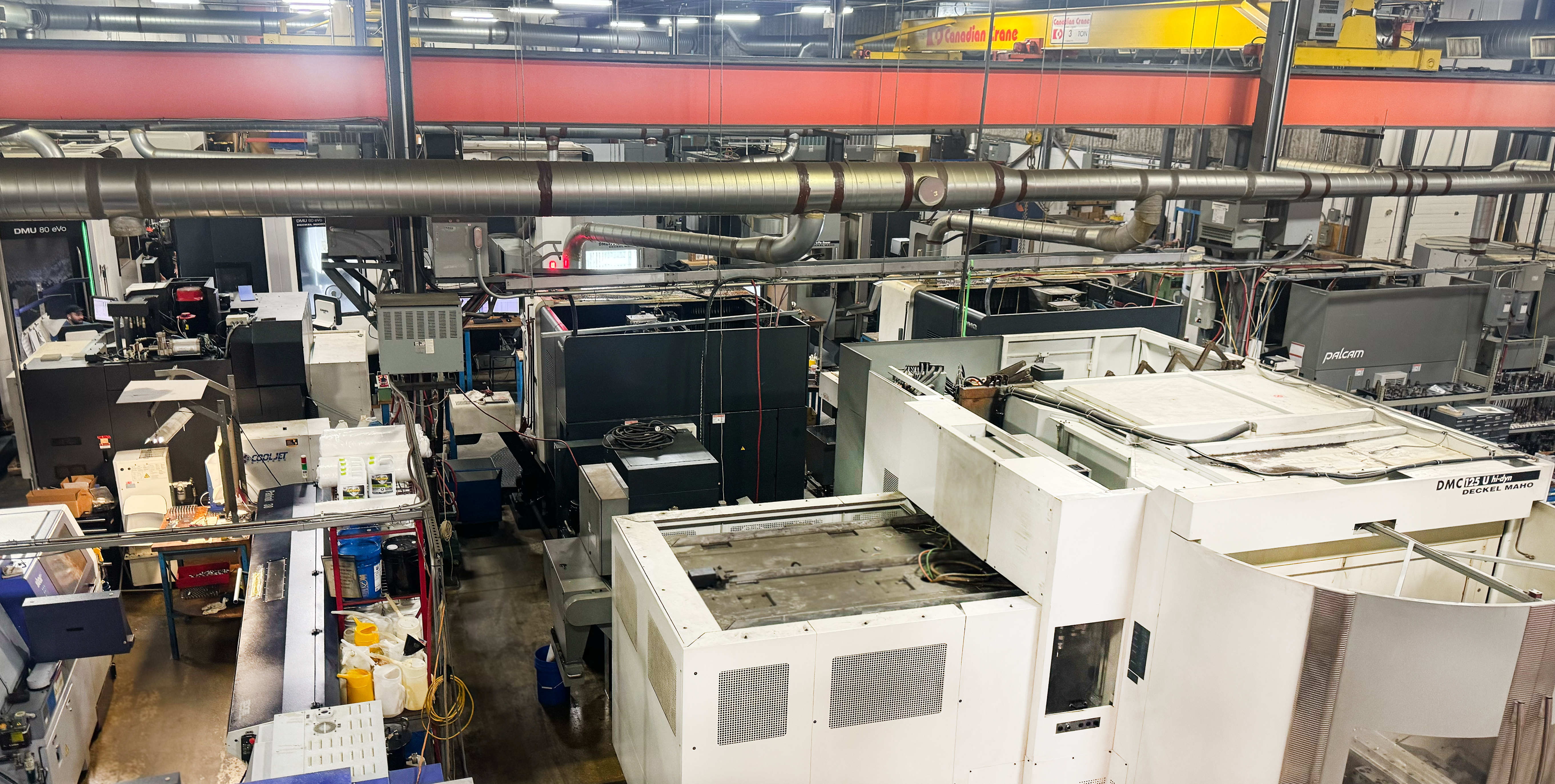 Our floor runs 25 five-axis CNC machines — primarily DMG MORI systems. Fleet size matters because when you need a replacement insert, you can't wait in line behind someone else's job.